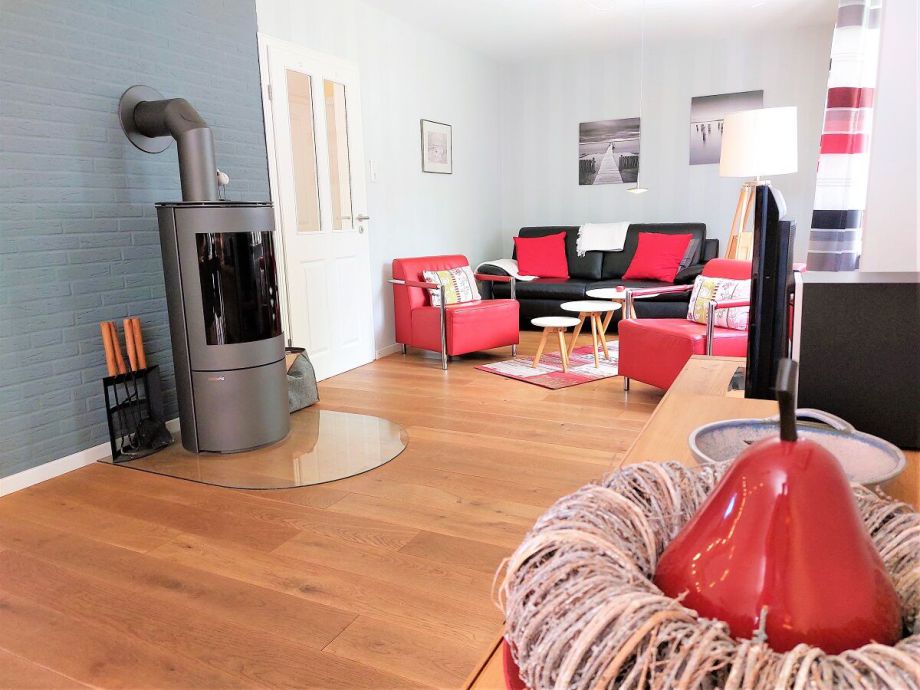Neben den Annehmlichkeiten einer Zentralheizung steht im Wohnbereich auch ein Kaminofen für gemütliche Abende zur Verfügung.